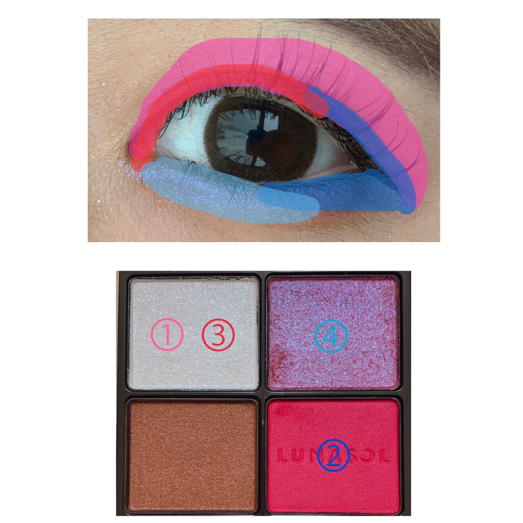 パールの輝きと下2色の程よい艶感。すごい。 3、4枚目の動画見てください…いつか買おうと後回しにしていたのを後悔する美しさ……。 後継モデルのアイカラーレーションNでもパレットの配色を眺めるだけでときめくような鮮やかなカラーをぜひ出してくださいLUNASOLさん!