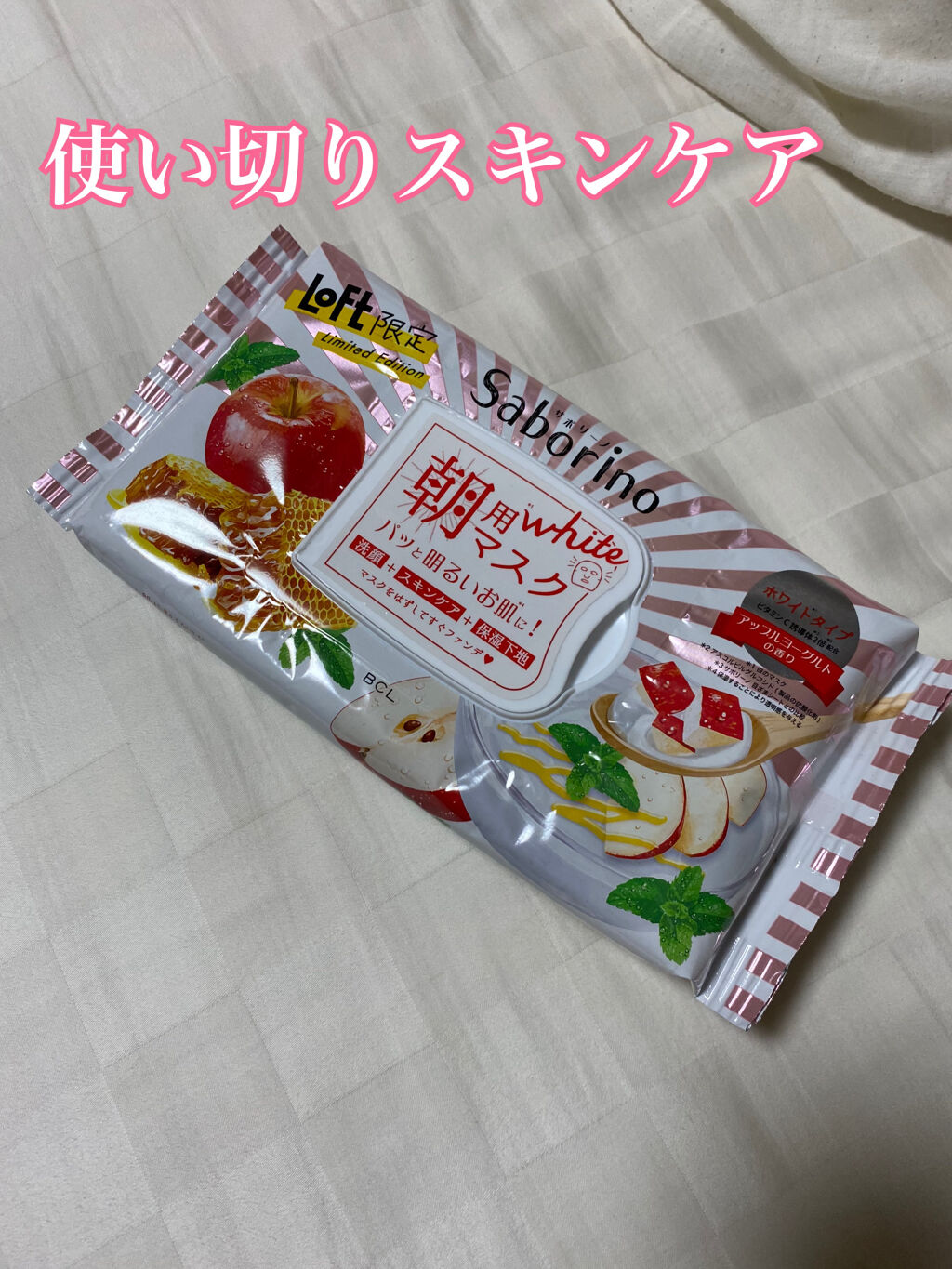 - 寝起き肌にそのまま貼るだけでOKのオールインワンマスク「サボリーノ 目ざまシート」に、LOFT限定「アップルヨーグルトの香り」が登場。 眠くてサボりたい朝も、洗顔からスキンケア、下地まで、これ一枚60秒で完了。 簡単なのにしっかりお手入れで潤って、化粧ノリの良い肌に! はがす時にサッと拭きとるだけで、余分な角質と汚れも一緒に絡めとります。 ■フルーツ・植物エキスに加え、ビタミンC誘導体が透明感をアップします。 ■ホワイトタイプ