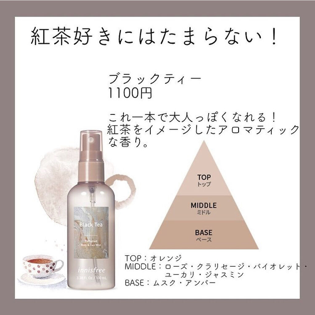 これ本当に1000円ですか?イニスフリーの香水!個人的にはピーチフルーツとブラックティーの香りが好きです!匂いの付き方がそこまで強くないので学校などにおすすめっ!ほんとに1000円?て疑いたくなるくらい素敵な香りなので是非!!髪の毛に付けると...