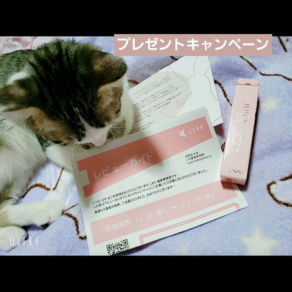 塗布直後もつやっつやだけど、数分すると更にツヤの出る艶膜タイプ✨ 上手く言えないけれど、唇がむちむちして見える💋 香りはアピュー特有のフルーツの香り、私は好き🤤💗