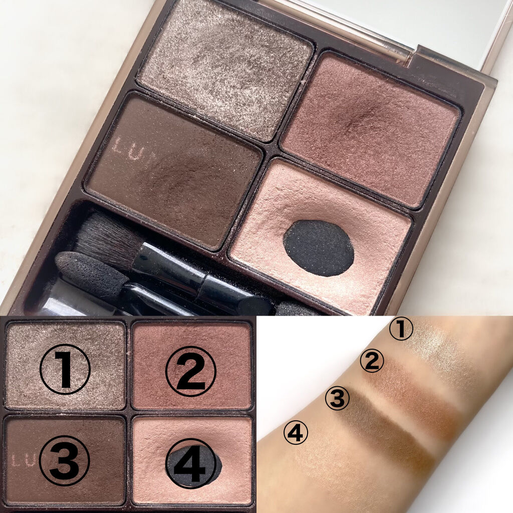 ★Today'seyemakeup.✔︎PLAYONMAKE(プレイオンメイク)/MYSHADOWPALETTE(マイシャドウパレット)PM-0056mirage.....①は透け感があってベースに使うのに持ってこいのカラーです🥰②はマットと...