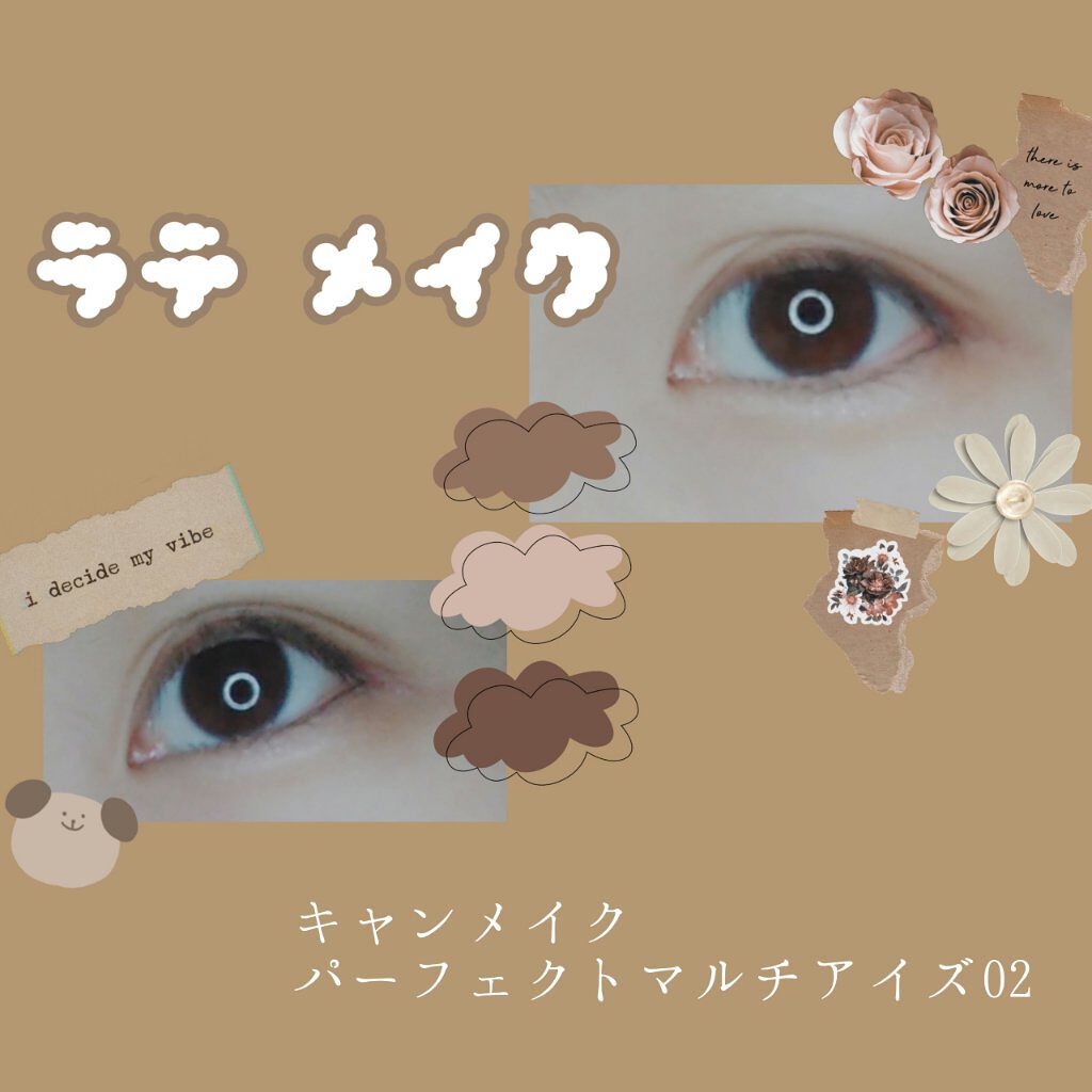 ラテメイクしてみました🥞ふんわりとした可愛らしい印象になります🥐🥨今回使ったアイシャドウは、キャンメイクパーフェクトマルチアイズ02です🥯裏に載っているおすすめの使い方を参考にメイクをしました🍒みなさんもやってみて下さい🌼...
