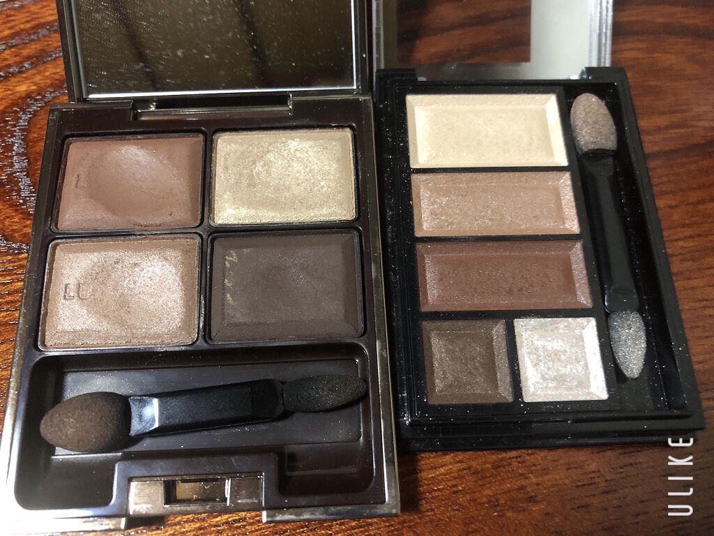 まず発色薄いです笑 ナチュラルメイクですかな。 あと、公式の画像とか見たかんじでは黄み寄りなのかなぁと思っていたんですけど、ほんのりピンク寄りな気がします。 左上のカラーがピンクすぎるのかなぁ🤔 右下も赤みのあるブラウン、ココアブラウン?みたいな。 左上使わないで他の3色でメイクすると公式画像のイメージっぽくなるのに左上使っちゃうと微妙になる。 粉質の良さとラメの可愛さはしっかりです。 でもべターザンアイズのシリーズ好きですよ。 マット3色(ベース・メイン・締め色)にラメ1色の構成って最高じゃね?って。塗るとき迷わないですし。 また新作に期待したいと思います。