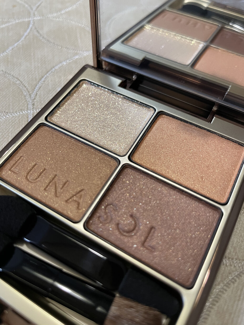 LUNASOLのベージュ系アイシャドウパレットです◎ どんな場面でも使えるカラーでめちゃめちゃ使い心地よかったです! 全てパール質感になっていますがギラギラ感はなくて綺麗な仕上がりになります♪