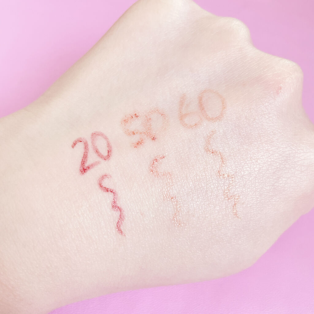 - <00 ブラウンブラック> シクロペンタシロキサン、トリメチルシロキシケイ酸、合成ワックス、脂肪酸(C18ー36)グリコール、(アクリレーツ/アクリル酸ステアリル/メタクリル酸ジメチコン)コポリマー、ジフェニルシロキシフェニルトリメチコン、トコフェロール、BG、水、シリカ、パルミチン酸レチノール、アカツメクサ花エキス、コーン油、グリセリン、センブリエキス、ヒアルロン酸Na、レシチン、水溶性コラーゲン、酸化鉄、酸化チタン、水酸化Al、マイカ <10 ブラック> シクロペンタシロキサン、トリメチルシロキシケイ酸、ポリエチレン、脂肪酸(C18-36)グリコール、(アクリレーツ/アクリル酸ステアリル/メタクリル酸ジメチコン)コポリマー、リンゴ酸ジイソステアリル、ヒアルロン酸Na、水溶性コラーゲン、パルミチン酸レチノール、(ステアロキシメチコン/ジメチコン)コポリマー、トコフェロール、BG、水、アカツメクサ花エキス、グリセリン、センブリエキス、コーン油、レシチン、フェノキシエタノール、BHA、BHT、クエン酸、クエン酸Na、メチルパラベン、ビオチン、酸化鉄、酸化チタン、水酸化Al <20 バーガンディー> シクロペンタシロキサン、トリメチルシロキシケイ酸、ポリエチレン、脂肪酸(C18-36)グリコール、(アクリレーツ/アクリル酸ステアリル/メタクリル酸ジメチコン)コポリマー、リンゴ酸ジイソステアリル、ヒアルロン酸Na、水溶性コラーゲン、パルミチン酸レチノール、(ステアロキシメチコン/ジメチコン)コポリマー、トコフェロール、BG、水、アカツメクサ花エキス、グリセリン、センブリエキス、コーン油、レシチン、フェノキシエタノール、BHA、BHT、クエン酸、クエン酸Na、メチルパラベン、ビオチン、酸化鉄、酸化チタン、赤202、合成フルオロフロゴパイト、シリカ、マイカ <30 ブラウン> シクロペンタシロキサン、トリメチルシロキシケイ酸、ポリエチレン、脂肪酸(C18-36)グリコール、(アクリレーツ/アクリル酸ステアリル/メタクリル酸ジメチコン)コポリマー、リンゴ酸ジイソステアリル、ヒアルロン酸Na、水溶性コラーゲン、パルミチン酸レチノール、(ステアロキシメチコン/ジメチコン)コポリマー、トコフェロール、BG、水、アカツメクサ花エキス、グリセリン、センブリエキス、コーン油、レシチン、フェノキシエタノール、BHA、BHT、クエン酸、クエン酸Na、メチルパラベン、ビオチン、酸化鉄、マイカ、ホウケイ酸(Ca/Al)、酸化チタン、水酸化Al、酸化スズ <50 ピンクベージュ> シクロペンタシロキサン、トリメチルシロキシケイ酸、ポリエチレン、キャンデリラロウ、(アクリレーツ/アクリル酸ステアリル/メタクリル酸ジメチコン)コポリマー、ジフェニルシロキシフェニルトリメチコン、トコフェロール、BG、水、パルミチン酸レチノール、アカツメクサ花エキス、グリセリン、センブリエキス、コーン油、ヒアルロン酸Na、レシチン、フェノキシエタノール、BHA、BHT、クエン酸、水溶性コラーゲン、クエン酸Na、メチルパラベン、ビオチン、マイカ、酸化チタン、酸化鉄、合成フルオロフロゴパイト、シリカ、水酸化Al、酸化スズ <60 オレンジブラウン> シクロペンタシロキサン、トリメチルシロキシケイ酸、ポリエチレン、キャンデリラロウ、(アクリレーツ/アクリル酸ステアリル/メタクリル酸ジメチコン)コポリマー、ジフェニルシロキシフェニルトリメチコン、リンゴ酸ジイソステアリル、トコフェロール、BG、水、シリカ、パルミチン酸レチノール、アカツメクサ花エキス、グリセリン、センブリエキス、コーン油、ヒアルロン酸Na、レシチン、水溶性コラーゲン、マイカ、酸化鉄、酸化チタン、合成フルオロフロゴパイト、水酸化Al <70 グレージュ> シクロペンタシロキサン、トリメチルシロキシケイ酸、ポリエチレン、キャンデリラロウ、(アクリレーツ/アクリル酸ステアリル/メタクリル酸ジメチコン)コポリマー、ジフェニルシロキシフェニルトリメチコン、トコフェロール、BG、水、シリカ、パルミチン酸レチノール、アカツメクサ花エキス、グリセリン、センブリエキス、コーン油、ヒアルロン酸Na、レシチン、水溶性コラーゲン、マイカ、酸化鉄、酸化チタン、水酸化Al、ホウケイ酸(Ca/Al) <90 テラコッタブラウン> シクロペンタシロキサン、トリメチルシロキシケイ酸、キャンデリラロウ、ポリエチレン、(アクリレーツ/アクリル酸ステアリル/メタクリル酸ジメチコン)コポリマー、ジフェニルシロキシフェニルトリメチコン、トコフェロール、BG、水、シリカ、パルミチン酸レチノール、アカツメクサ花エキス、グリセリン、センブリエキス、コーン油、ヒアルロン酸Na、レシチン、水溶性コラーゲン、酸化鉄、マイカ、合成フルオロフロゴパイト、酸化チタン、水酸化Al