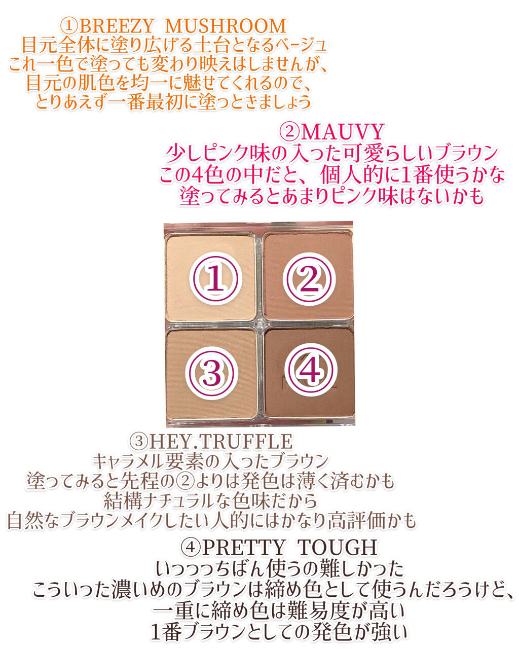 | アイシャドウパレットランキング第6位 | 粉質もパサパサしていないしっとりさらさらの粉質で、ベターザンアイズを持っている方なら想像のつくあのサラサラ感です | 詳細を見る | |