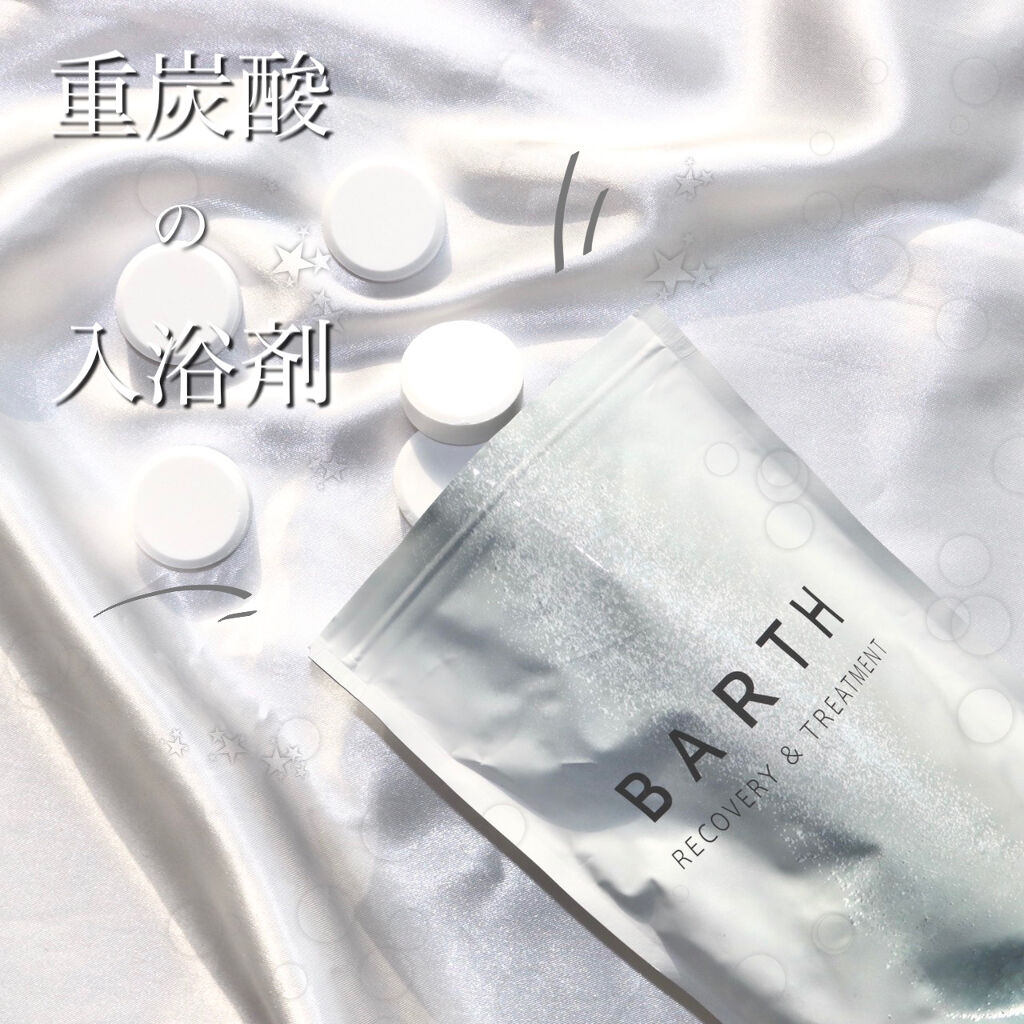 - 【医薬部外品】 ポイント① 溶け込む重炭酸イオン BARTH は独自の製造技術で、重曹とクエン酸の反応を科学的に計算されたタイミングで安定化させ、お湯を中性に保つことで 、重炭酸イオンの 8 ~ 9 割を湯中に溶け込ませることに成功しました。重炭酸イオンがしっかり溶け込んだお湯に入浴することで、有効成分が血流を促進し、疲労回復を促します。 ポイント② 自然由来のクエン酸 BARTHは、炭酸ガスを発生させるための酸を石油合成ではなく、自然生成物(でんぷん)の発酵で得られるクエン酸を使用しています。従来クエン酸は反応性が高くすぐに揮発してしまうため、重曹と配合して錠剤にすることが極めて困難だと言われてきました。 自然由来のクエン酸と炭酸ガスの組み合わせが、お肌のキメを整え柔らかくし、美肌効果をもたらします。 ポイント③塩素を中和するビタミンC配合 ビタミンCを配合したことで、一般家庭で使われる水道水の中に含まれている塩素を中和し、刺激の少ない肌触りのよいお湯を可能にしました。 敏感肌の方や、お子様にも安心してご入浴いただけます。 ポイント④無着色・無香料 着色料や香料などを一切使用せず、余計なものを削ぎ落としました。