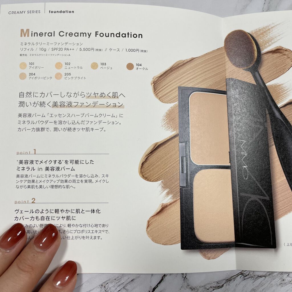 カバー力があり、肌へのフィット感もある優秀ファンデーション! 特に毛穴のカバー力を感じました⭐︎粉で埋めたような粗さは全然無くて、しっとりとしたクリーミーな粉が綺麗にムラを隠してくれる感じ◎ MiMCは仕上がりが綺麗なだけではなく、石けん落ちなのが凄すぎる! 一般的なミネラルファンデーションは仕上がりが劣るイメージですが、MiMCは全くそんなことがないので本当に大好き⭐︎⭐︎⭐︎ マンゴー&ラズベリーの優しい香りです。 配合されているプロポリスエキスが、日中も大人肌を守りながらエイジングケアをしてくれます◎