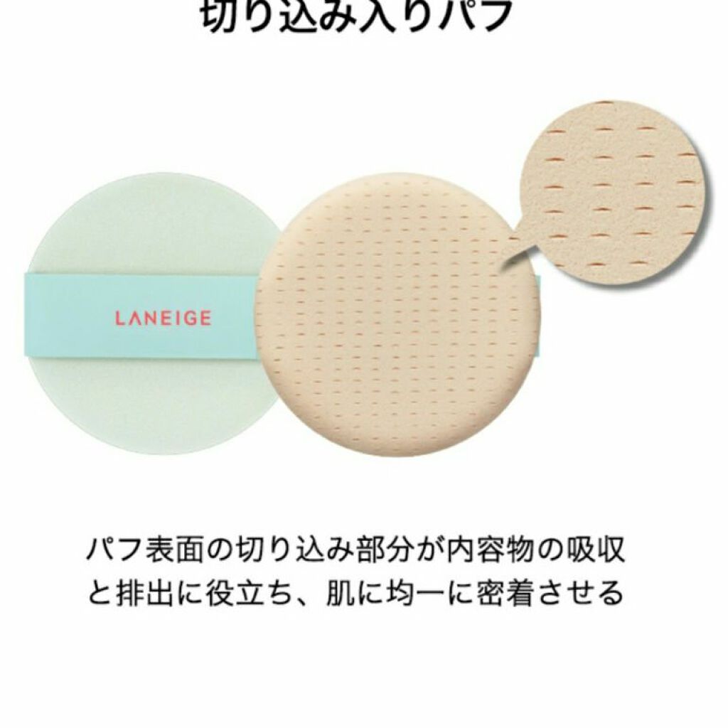 - 肌にぴたっと密着することで、24時間*¹崩れにくい ナチュラルマット肌に仕上げる世界中で大人気のクッションファンデーション *¹当社調べ、個人差があります。 1.VIVID COVERAGE ™(ヴィヴィッドカバレッジ) 技術を採用 LANEIGEクッション史上最も小さいパウダーが、 しっかりカバーなのに重くなく、軽い付け心地とナチュラルな仕上がりを実現しました。 塗りなおしても厚塗り感がなく、カラーメイクをさらにひきたてます。 2.高い密着力を実現したStrong Fixing Formula™ (ストロングフィクシングフォーミュラー )技術を採用し、 皮脂や汗に強くマスクやスマートフォンにも ファンデーションがつきにくい肌に仕上げます 3.皮脂コントロールパウダー配合で汗や皮脂による崩れを防ぎ、 肌のうるおいを閉じ込め乾燥しずらい、ナチュラルなセミマット肌を実現します。 4.アモーレパシフィック初のブルーライトカット効果採用のクッション スマフォやPCといった電子機器、LEDや蛍光灯から発せられるあらゆるブルーライトから肌をプロテクトします。