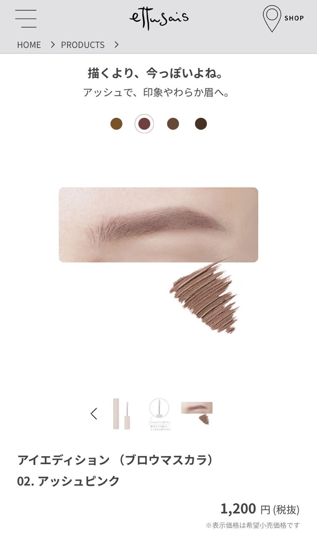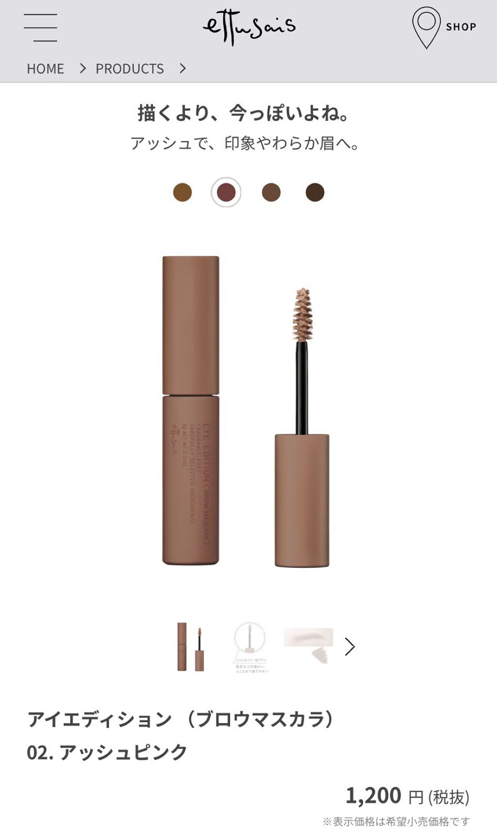 【#ettusais/#エテュセアイエディション#ブロウマスカラ】EX02.アッシュピンクブラシが小さく塗布しやすいアイブロウマスカラしっかり眉毛に付くのに、皮膚には付きにくくお気に入りです。02はくすみ系のアッシュピンクだから自眉の黒さを緩...