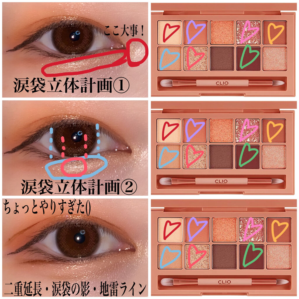 ここまで変わるアイメイク、みせますクリオのアイシャドウパレットだけをつかって詐欺メイクしていきます簡単8ステップ🥺....前置きなしでさっさと行きましょう🏃....画像の通りなんですが、解説していきます使うのはCLIOプロアイパレットストリー...