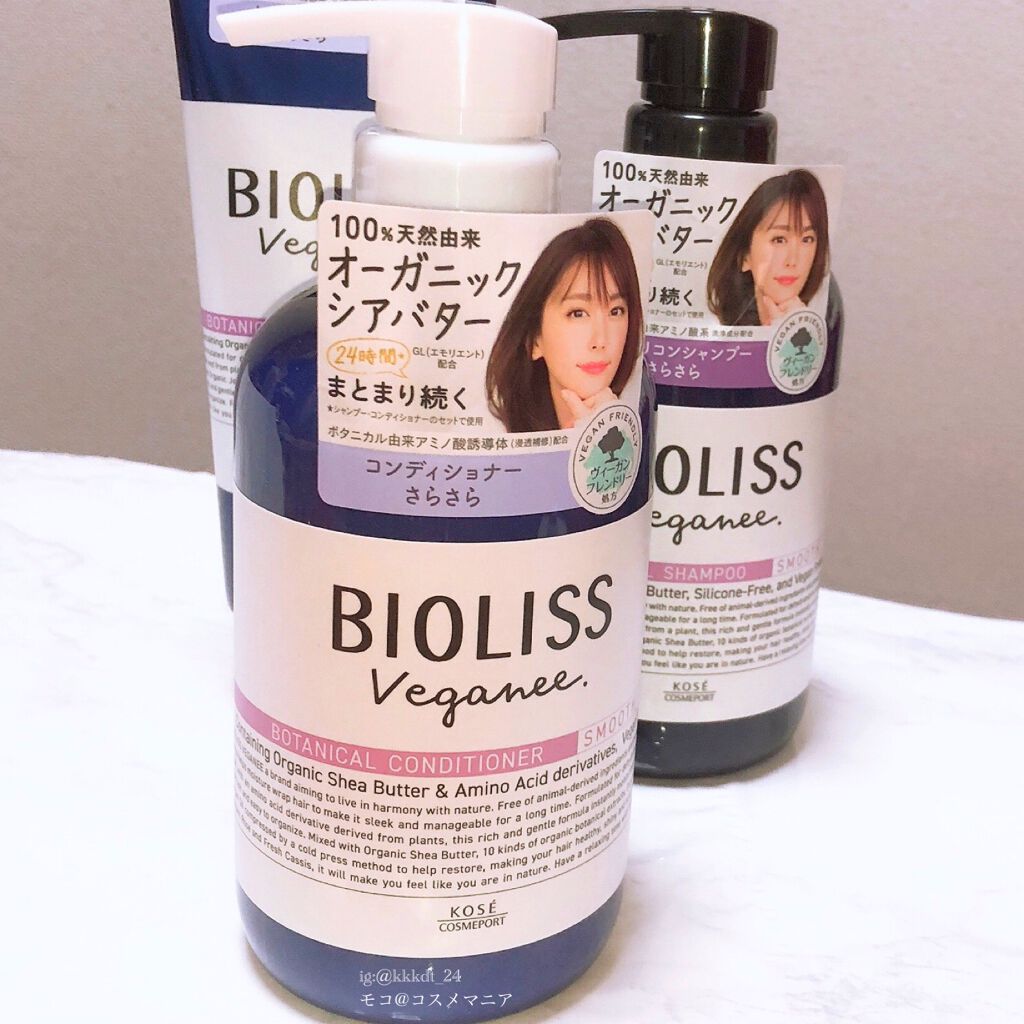 ..ビオリスヴィーガニースムース✨..【スムース】さらさらなめらかにまとまる髪へ⭐️シャンプー繰り返す毛先のパサつきにも、まとまりが長時間持続するシャンプー。100%天然由来のオーガニックシアバター※1を配合、うるおいバン...