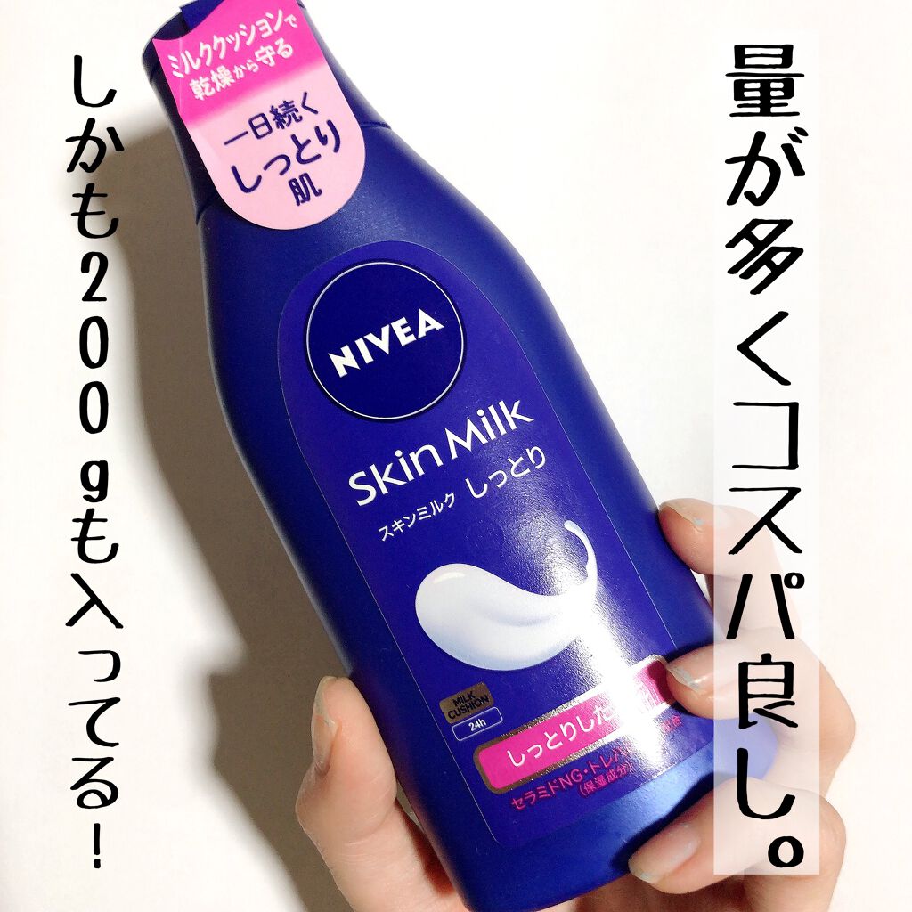 ニベア・スキンミルク しっとりこっくりクリームです!だからか伸びが悪い△お風呂上がり全身に塗るのでもうちょっと伸びてほしい笑香りは何の匂いか?正直良い匂いでは無いですが匂いが残らないので気にならないです!冬はたっぷり塗るので大容量でポンプタイ...