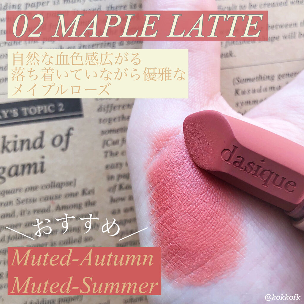 dasique★ソフトベルベットリップスティック02メープルラテ高級感あるデザインです!磁石で閉まるので閉めやすかったです!色もかわいいブラウンぽいカラーでイエベさんも、使いやすいです乾燥しにくいテクスチャーでマットリップ苦手な方でも使えます...