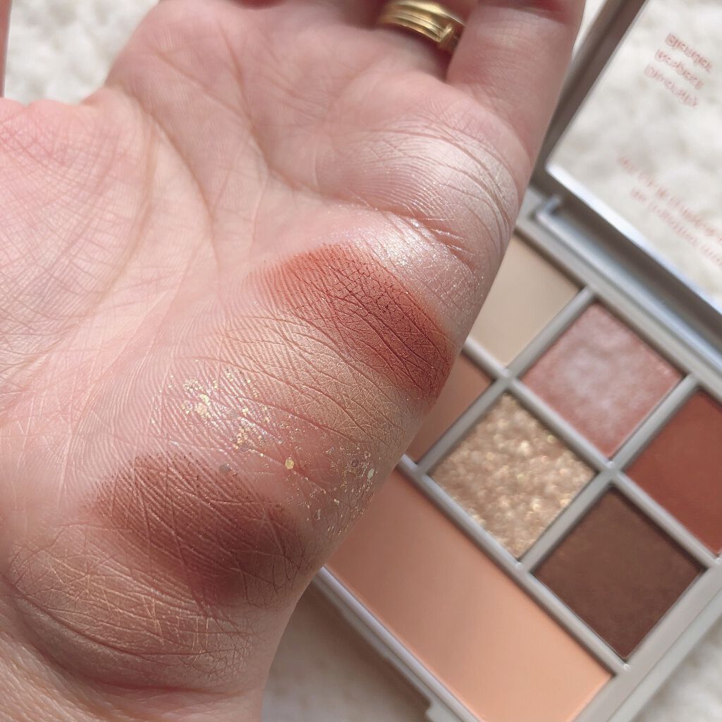 よくパレットのなかで明るいカラーをベースにまぶたに広く塗ることが多いのですが、パール感のあるカラーを避ける🙆♀️! パール感たっぷりの明るいカラーは涙袋に使うぐらい光を集めてぷっくり見せてくれるので、まぶたに広く使うと腫れぼったく見えがち😓 目元を明るくみせてくれたり、次に使うアイシャドウをぼかしやすくしてくれるけど、すっ飛ばしてメインのカラーを塗っちゃう✊🏻❤️🔥 涙袋にはたっぷり塗ってぷっくり見せる🙆♀️💕 シルキースフレアイズのマットタイプはすごく優れているな〜と感じました☺️💗 赤やオレンジなどは、入れすぎると腫れぼったく見えやすいので、見せたいカラーは下まぶた目尻にのせて色をたのしむ♡♡ パール感なしの透けマットだけじゃ物足りない… そう感じさせない華やかなラメが左上に入っているので黒目上と涙袋にのせるとすごく可愛い仕上がりに😍! 厄介な左右差のお陰でマットアイシャドウが好きになりました😌💕