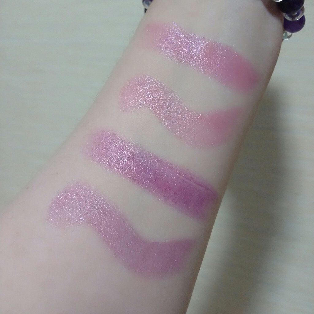#えりぃのスウォッチです!#ケイト#KATE#3DプロデュースシャドウPU-1#ムーディーエクステンション1540円ピンク味の強いパープル。ラメは大粒なので目元以外には使えなさそう。粉質やラメ感が良くて、さすがケイト!肌なじみが良いのに、目元...