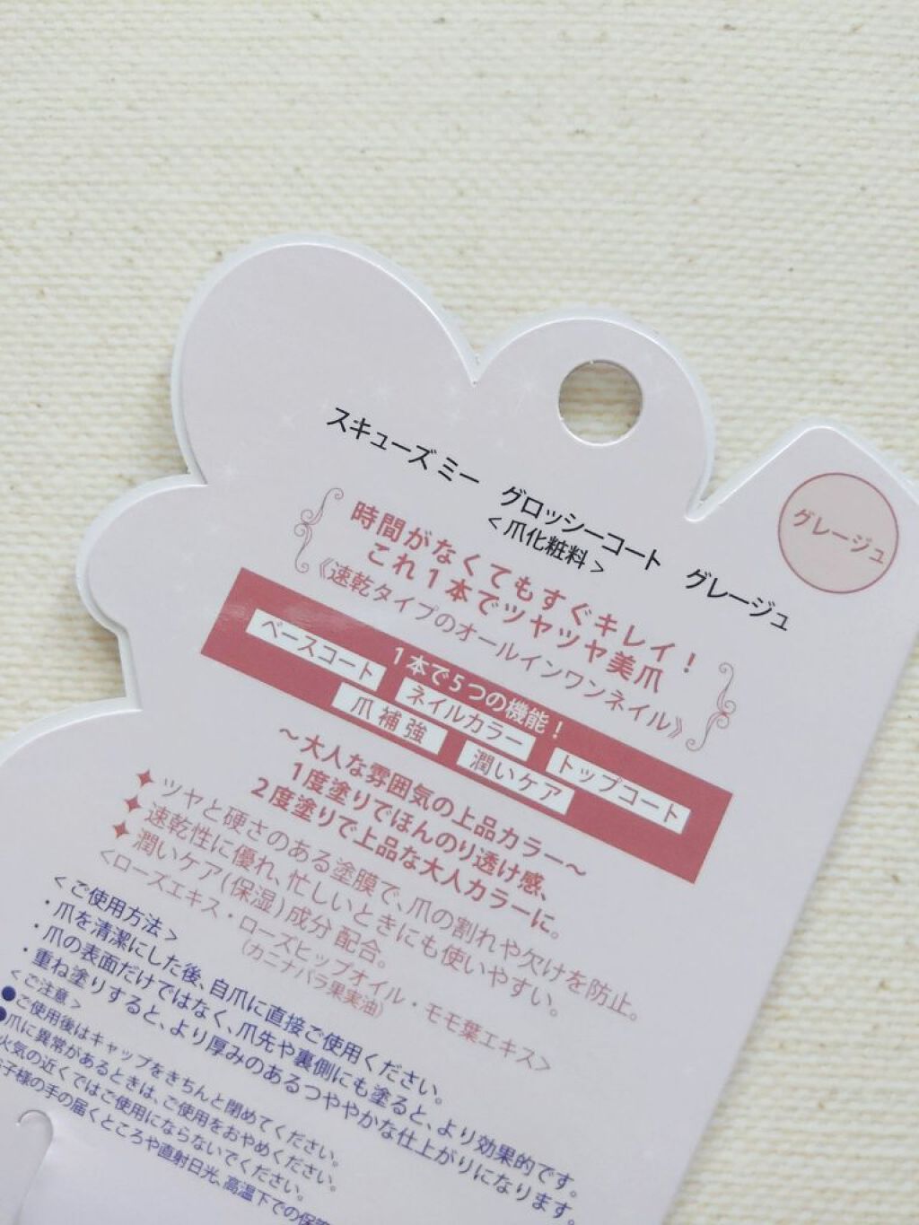 💅🏻SQUSEMEスキューズミーグロッシーコート *グレージュ*オールインワン時短ネイル*トップコートいらずでちゅるん!1本5役の速乾タイプ・ベースコート・ネイルカラー・トップコート・爪補強・潤いケアパッケージがリニューアルしてて、可愛い!と...