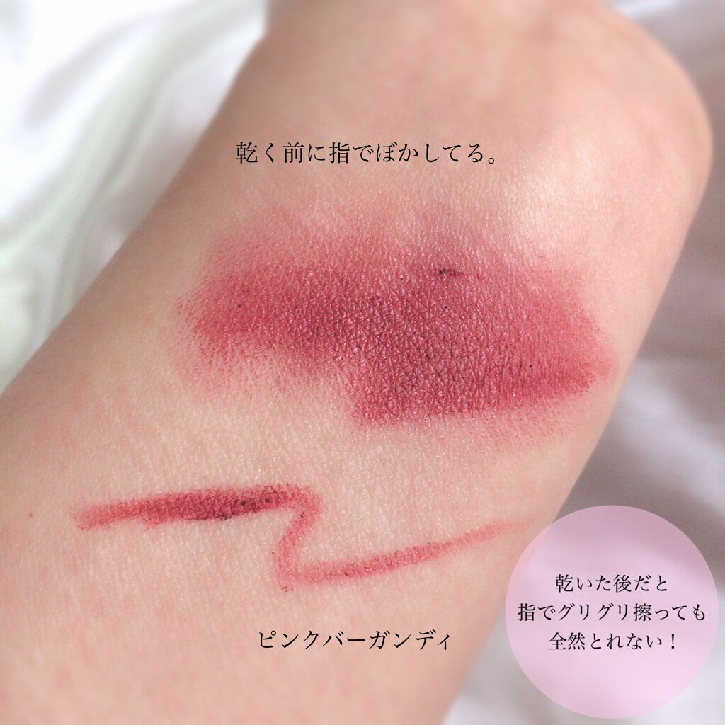 - 限定色ピンクバーガンディ登場! かわいくて色っぽいモテeyeに。 なめらかなクリーミィタッチ芯でまつ毛のすき間や目頭も描きやすい。水に強いウォータープルーフ× 皮脂・こすれに強いスマッジプルーフのWプルーフ処方。にじみやすい埋め込みラインも長時間キープ!