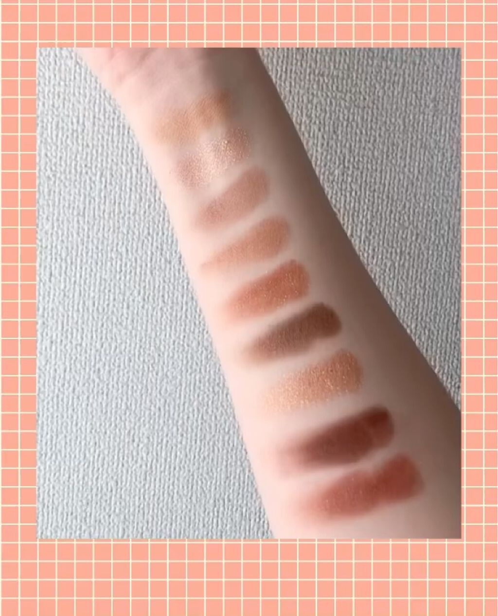 ハニーブラウン👉一番左はイエローベージュ真ん中はコーラルよりのオレンジ一番右はダークブラウン ブリックブラウン👉一番左は肌馴染みのいいベージュ真ん中はキャラメルのような若干赤みも入ってる一番右は赤みのあるブラウン どちらもデイリー使いしやすく、とくに9番の新色はこれからの秋メイク🍂に使いたくなるようなおしゃれなカラーでした❣️