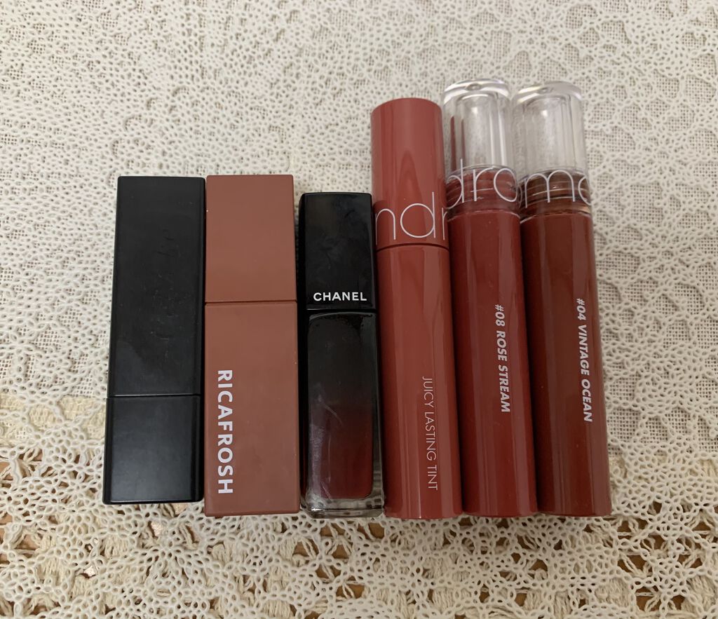 このリップは乾燥や荒れたりせずにティント並みに モチが良くご飯を食べても色が残ってます✨ 色も汚くならずに薄くなるので塗り直しできない日にぴったりです! このリップは一回塗った後に3分ほどまち ティッシュオフするとモチの良さの効果がきちんと でます! 粘膜色でバズってたリップ✨ イエベブルベ問わずに誰にでも合うピンク色🥰 一度塗りでナチュラルな仕上がりに👍 真っ赤な血のような色です笑 パキッとした色の赤ですが薄く塗ればナチュラルな 仕上がりになります✨ 秋冬にぴったりのレッドブラウンリップ🥰 くすみカラーで落ち着いた雰囲気に✨ 顔色を締めてくれるのにナチュラルな仕上がりに!