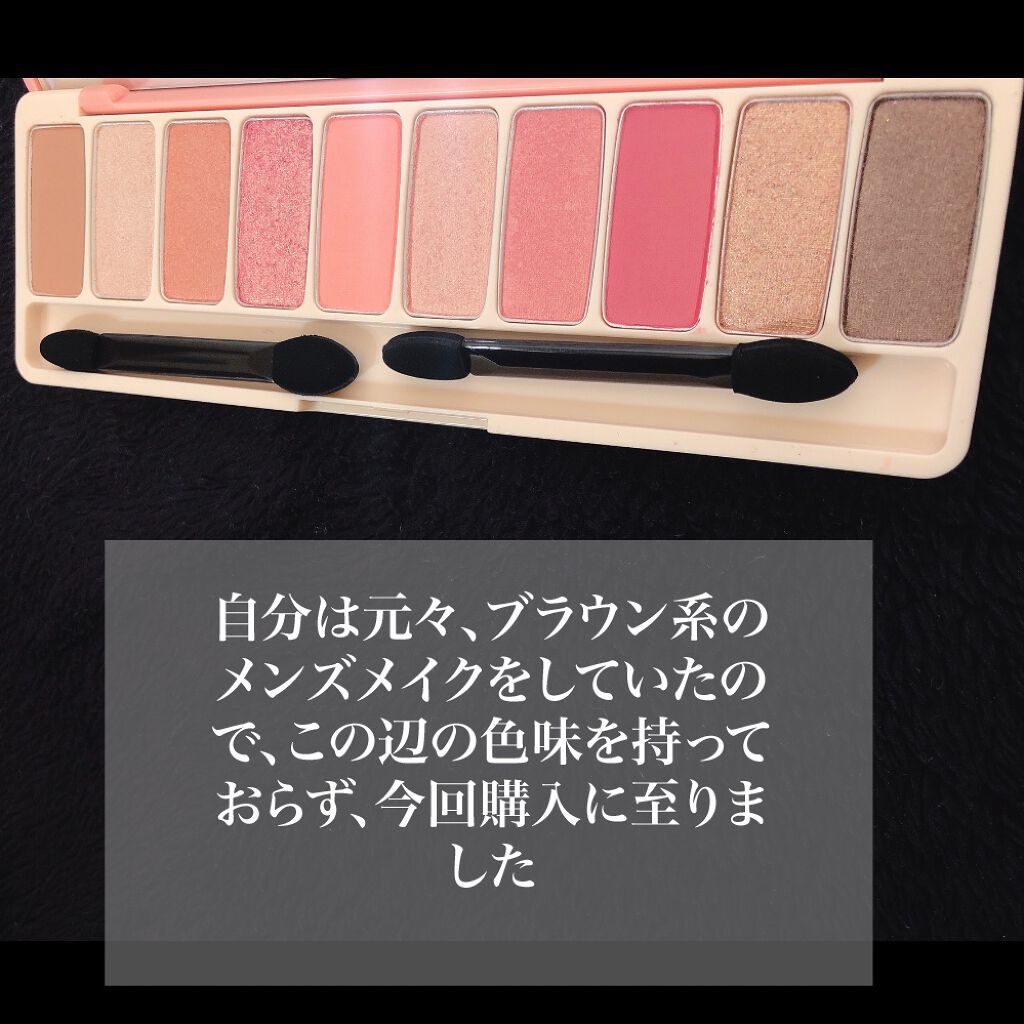 - 肌なじみの良い、鮮やかな発色で目元を華やかに彩る捨て色なしの10色アイシャドウパレット 異なる3種のテクスチャーを自由に組み合わせて、グラデーションも思いのままに。 NEW 2023.4 ・肌トーンにあう配色を詰め込んだトレンドカラー 肌トーンに合わせて、自分に似合うトレンドカラーが楽しめる♡ パーソナルカラー×トレンドカラーの掛け合わせパレットで、デイリーメイクもスペシャルメイクも気分にあわせてなりたい自分に! ・むにゅっとジェル質感ラメで高密着、煌めく目元 パレットの中でもポイントとなる大きめ粒子のラメは、ジェルのような新質感で落ちにくく肌にぴったりと密着します。キラキラとした目元をキープします。 ・使うカラーは大きめに!リアル捨て色なしパレット ベースやラメのよく使うカラーと締め色や濃い色等の減りが少ないカラーを異なるサイズで詰め込んだ、リアル捨て色なしパレット! <使用方法> 付属のデュアルシャドウブラシでベースカラーをまぶた全体に塗り広げます。細いブラシでグラデーションや目尻、アイライン、涙袋などのポイントカラーをのせて仕上げます。