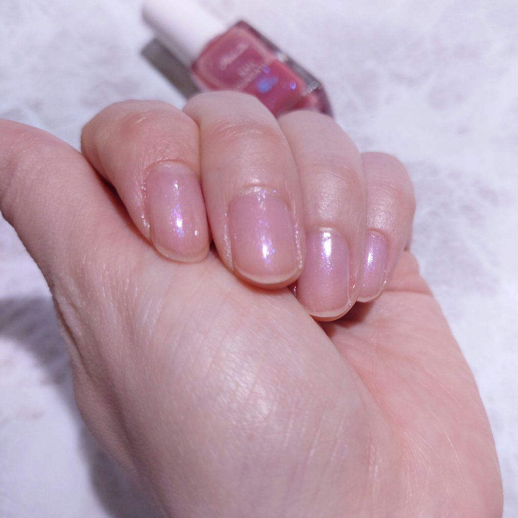 血色感のある可愛らしい桜色ですᐢ ܸ. ̫ .ܸ ᐢ🌸 速乾処方がされているのとベースコートトップコートなしでも使用できることから、サッとひと塗りでOK! それなのに綺麗なツヤが出ます…🥺 生活に余裕がなくても気分を上げてくれるのでとにかくよく塗っています!笑 セブンイレブンで買えるのと550円というお手ごろさからお試ししやすいのもおすすめポイントです🥰