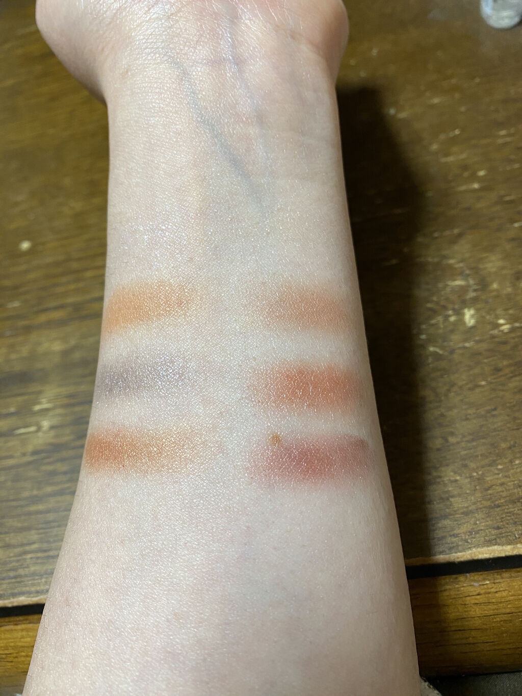 妹が使ってたものを貰いました。シグニチャー カラー アイズ03シグニチャー カラー アイズ0403左上、左下を使ってます。発色が綺麗、重ねてもにごらずに綺麗なグラデーションがつくれます。黄味強めのゴールドなんだけどラメが上品。04もう少ないけ...