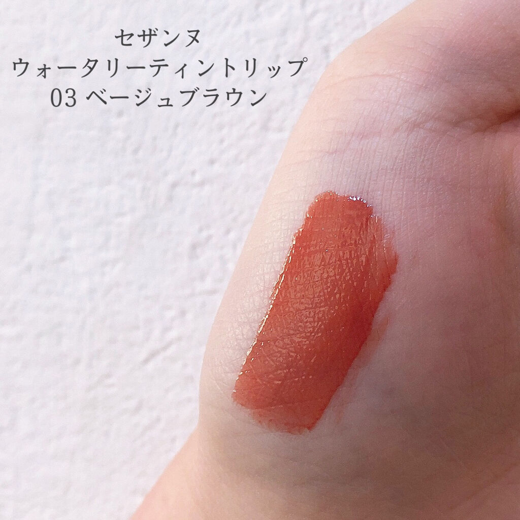 - ツヤ×色×潤いをキープする、セザンヌの新濡れツヤリップ みずみずしい濡れツヤ感ある仕上がりで、発色とツヤが長続きするティントリップです。ティントの発色を透明のベールで覆うリップコートのような処方で、ツヤ感と色をキープします。さらに、唇表面のべたつきは少なく、しっとり潤うオイルinウォーター処方を採用しています。