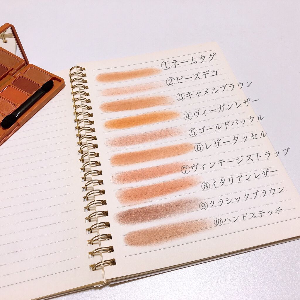 - 肌なじみの良い、鮮やかな発色で目元を華やかに彩る捨て色なしの10色アイシャドウパレット 異なる3種のテクスチャーを自由に組み合わせて、グラデーションも思いのままに。 NEW 2023.4 ・肌トーンにあう配色を詰め込んだトレンドカラー 肌トーンに合わせて、自分に似合うトレンドカラーが楽しめる♡ パーソナルカラー×トレンドカラーの掛け合わせパレットで、デイリーメイクもスペシャルメイクも気分にあわせてなりたい自分に! ・むにゅっとジェル質感ラメで高密着、煌めく目元 パレットの中でもポイントとなる大きめ粒子のラメは、ジェルのような新質感で落ちにくく肌にぴったりと密着します。キラキラとした目元をキープします。 ・使うカラーは大きめに!リアル捨て色なしパレット ベースやラメのよく使うカラーと締め色や濃い色等の減りが少ないカラーを異なるサイズで詰め込んだ、リアル捨て色なしパレット! <使用方法> 付属のデュアルシャドウブラシでベースカラーをまぶた全体に塗り広げます。細いブラシでグラデーションや目尻、アイライン、涙袋などのポイントカラーをのせて仕上げます。