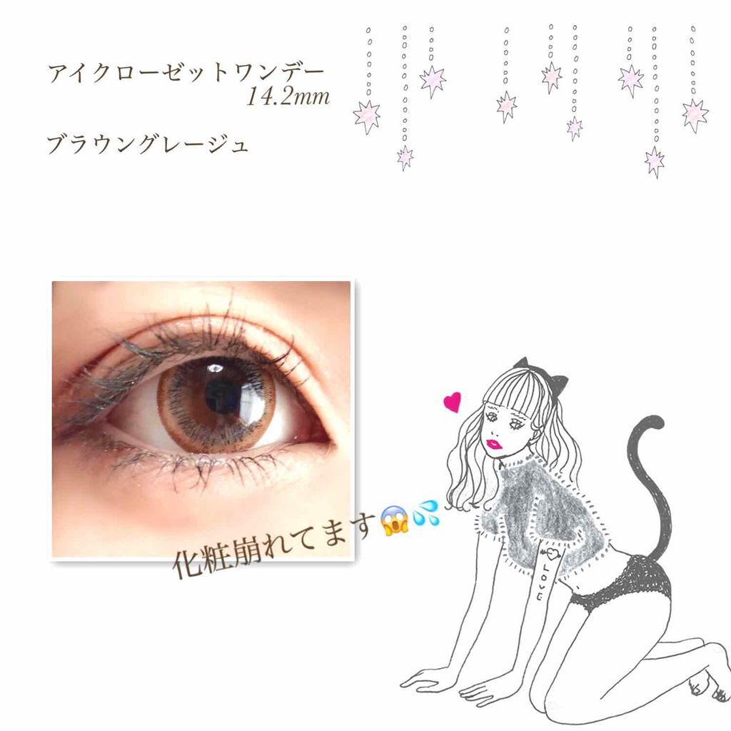 今回アイクローゼットワンデー14.2mmエアリーオリーブとブラウングレージュを初めて買ってみました🤩フチが茶色なのがナチュラルでいいですv(*´>ω<`*)vまだブラウングレージュは付けてないのですが期待できます💕...