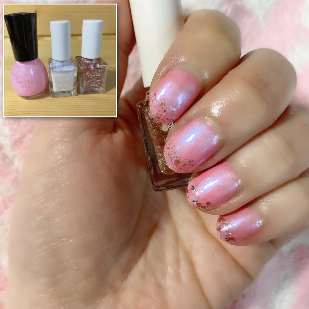 💅🏻Paradoパラドゥミニネイル *GD02ムーングリッター⚠️写真2枚目に爪に塗ったスウォッチ有り (人差し指、中指の爪1/2) (ベースはネイルファンデーションPK03を2度塗り) (3枚目は左からSV05.PK10.GD02)☆使用ネ...
