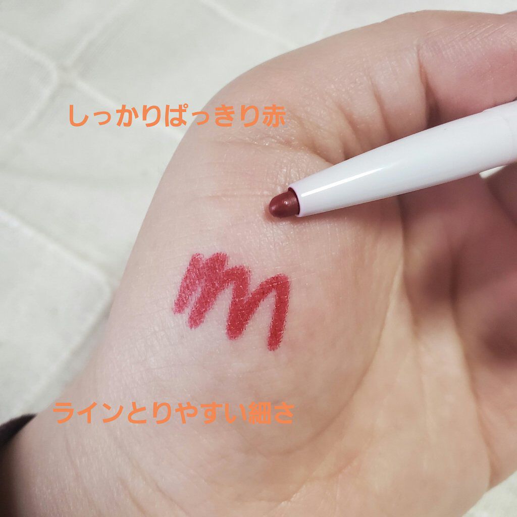 なめらかな芯でスルスル描ける、美しい輪郭が続くリップライナーです。 削らず使えるくり出しタイプです。 リップライナーに初挑戦してみました。スルスルとひっかかりなく、描けるので感動しました。 プチプラでお試しのつもりでしたが、とても優秀だと思います。 色味も使いやすいので、まず挑戦してみようかな?