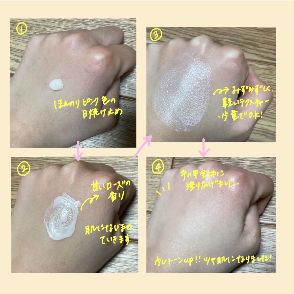 ピンクベージュの色付き日焼け止めです。ほんのりトーンアップと艶感のある仕上がり。 みずみずしい使用感とセラミド配合で、日中の乾燥をやや軽減してくれました。 香りはお花とハーブの間くらいの匂いで私は好きでした。