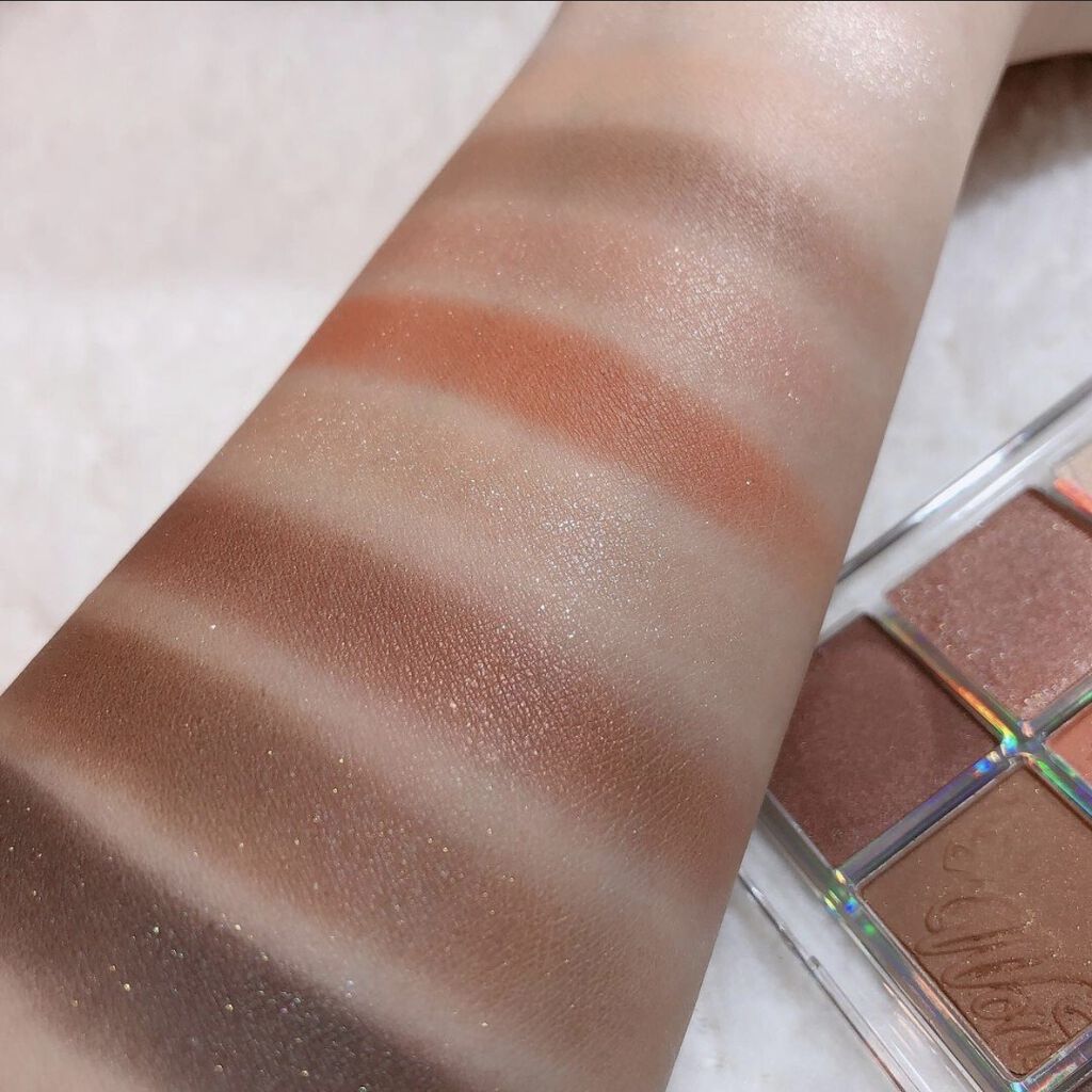 ベースメイクをパウダーファンデでなるべく薄めにしあげています。あまりにも粉っぽくベースを仕上げるとマットアイシャドウの付きが悪くなりそうな気がするので(なんとなく)…😅 パレット左上のベースカラーだけはアイシャドウブラシ(大)それ以外は(小)のブラシで塗っています! 涙袋の影は付属のブラシの細い方で。仕上げに涙袋に左上のベースカラーを少しのせると涙袋がふっくら見えてオススメです◎!