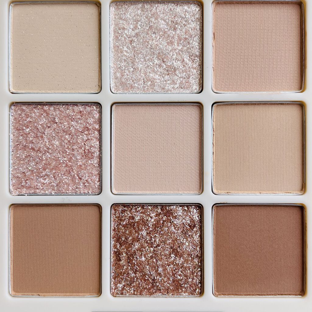 デイジークの人気の9色パレットです!マットカラーはふわっとした発色で粉質もほどよくしっとりしています。 07 Milk Latte の色は1番淡い色が揃ったパレットで、右下の1番濃いブラウン以外はとても薄い発色です。 かなりナチュラルに仕上がるのでデイリーメイクに使っています!