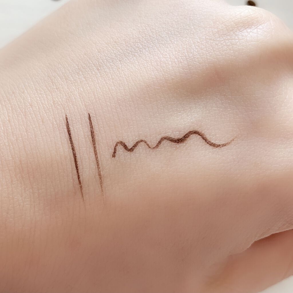 ウォータープルーフ・美容液成分配合 ¥990(税込) しっかり目元を引き締める黒 ブラックで細いラインが描きたい方におすすめ 強調と抜け感を両立するグレージュ ピンク、オレンジ、ブラウン、どの色にも合わせやすそうな色かなと思いました。