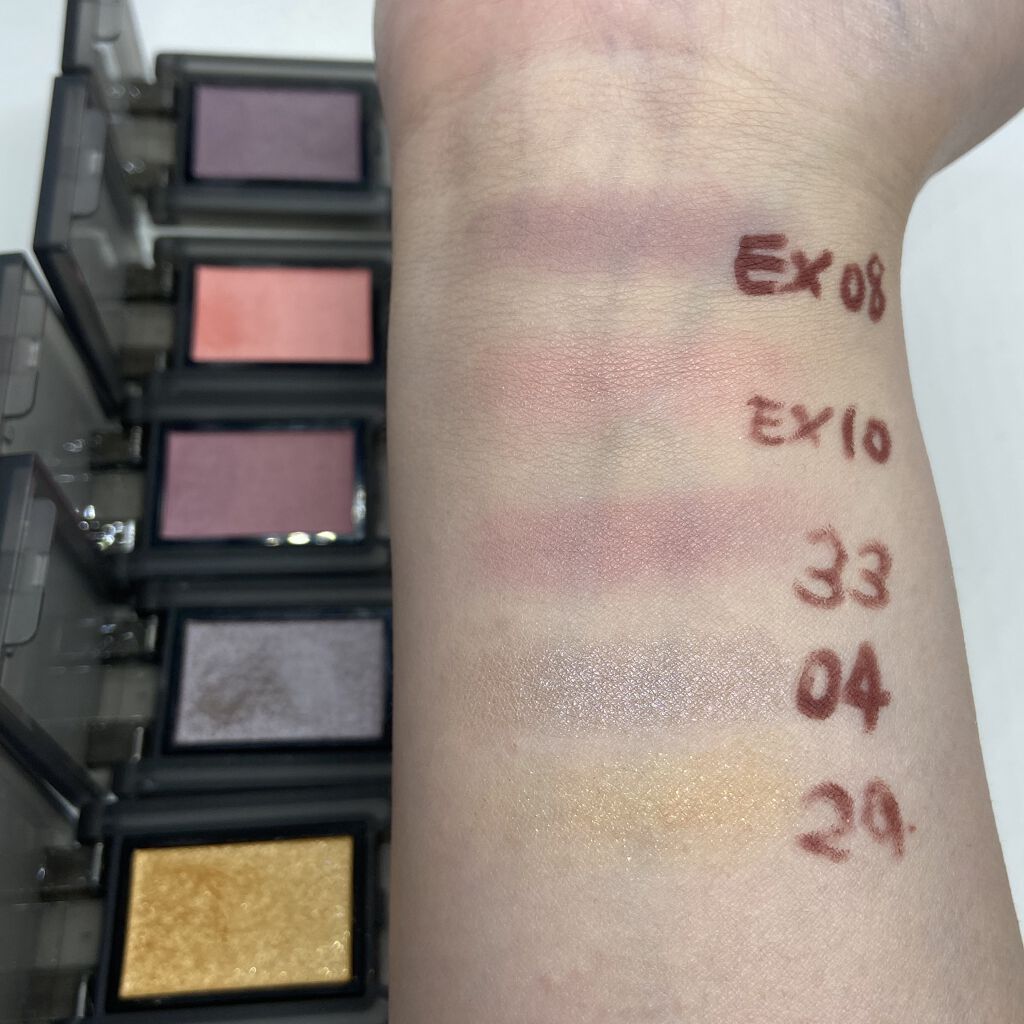 見た目やスウォッチ通り、本当オシャレな配色なんです。すごく綺麗。 色持ちも良くなってて、粉質も悪くない。 ハマる人にはハマるだろうし、ナチュラルめが好きな人ならいいんだと思います。