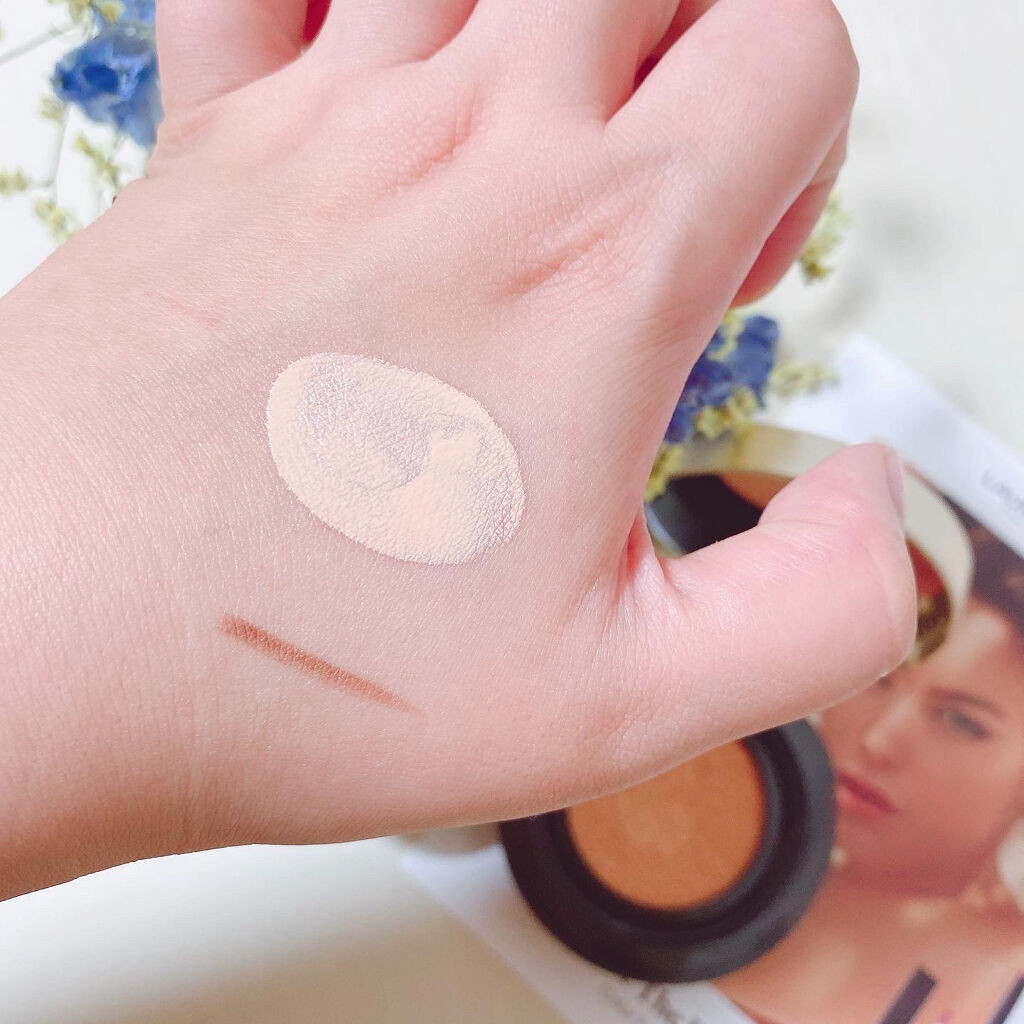 リピート3回目で大のお気に入り💓 適度にカバーしながらもナチュラルで、隠してます!というより、元から肌綺麗です!という感じに仕上がります☺️ テクスチャーはみずみずしく、クッションなのに全然乾燥しません。 むしろもちっとした肌になります。 肌にぴたっと密着して崩れにくいので、マスクとも相性いい🙆♀️