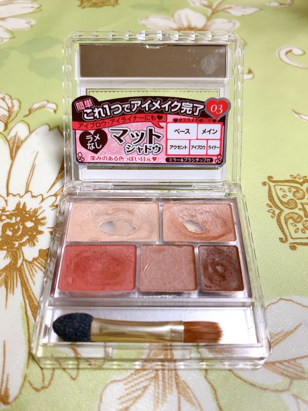 - アイメイク、これ1つで完了❤ アイシャドウ・アイブロウ・アイライナーとマルチに使える ラメなしマットな5色入りアイシャドウパレット 肌にとけ込むやわらかな陰影で、愛らしいナチュラルでか目に。 明度の違う同系色ブラウンで構成されたパレットなので、きれいなグラデーションが簡単に完成。 ナチュラルメイク派、学校・会社メイクにもぴったり! 撥水効果のあるオイルを配合することで、キレイが長持ちします。