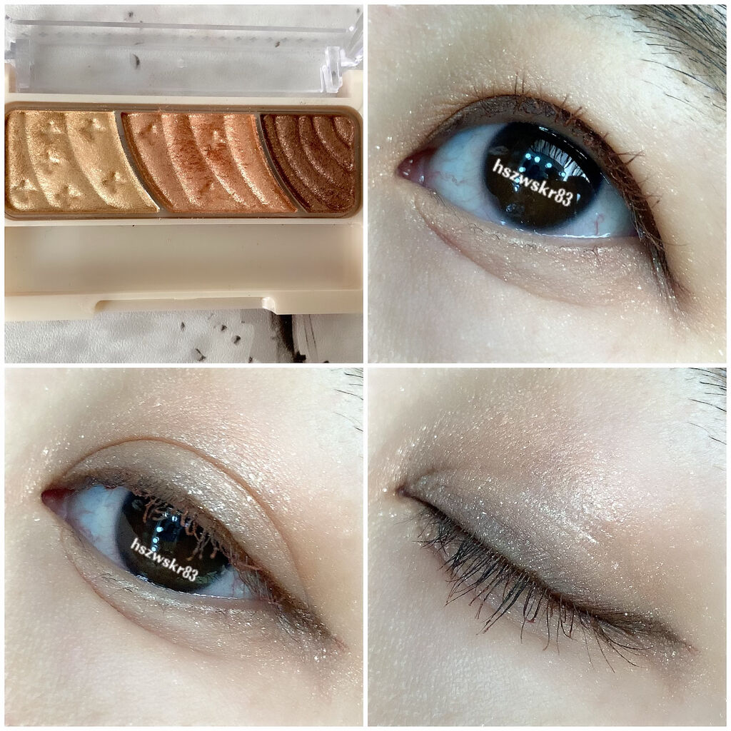 - 3色で簡単に明るく大きな目元に。 しっとり感触のアイシャドウ。 くすみを飛ばす明るさベース、ひとえ・奥二重の方でも幅広く塗れる肌なじみの良い中間色、 濃密高発色の締め色が目の輪郭を強調し大きな目元に。 微細パール配合でくすみを飛ばし、明るい目元へ。