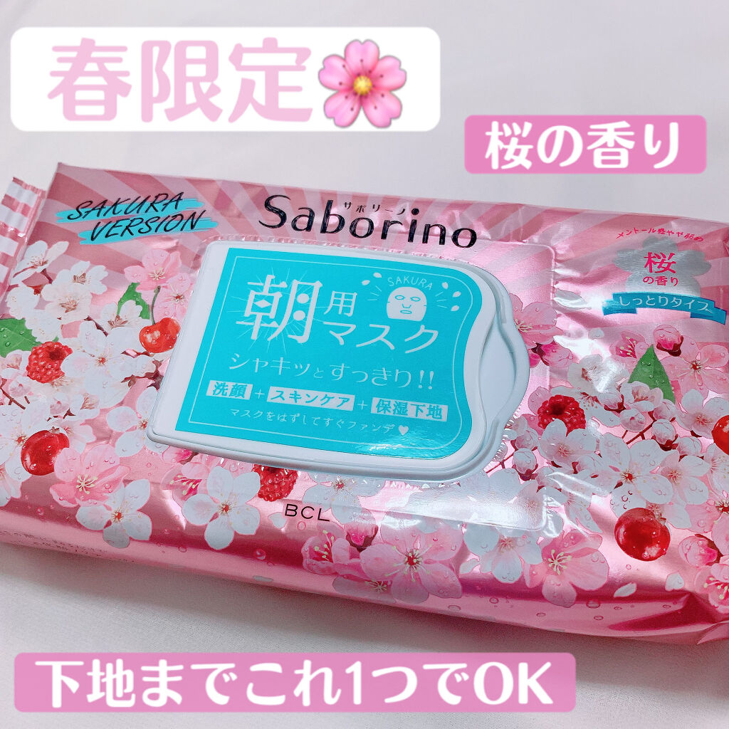 - 【数量限定】 今年も登場!ふんわり春を感じる桜のサボリーノ 起きたら60秒でメイクへGO!洗顔いらずの朝用シートマスク 春限定「桜の香り」 ■シートマスク1枚で洗顔+スキンケア+保湿下地が完了! 寝起きの肌にそのまま貼るだけで、洗顔、スキンケア、保湿下地までできる60秒のオールインワンマスクです。 はがす時にサッと拭き取ることで、余分な角質と汚れを一緒にからめ取ります。 ■しっとりタイプ&メントール感はやや弱め すっきりひきしめながら、しっとり1日中みずみずしく潤う肌へ。化粧ノリもアップ! 春先は季節の変わり目や花粉の影響で肌が荒れがち。 そんな刺激を受けやすいシーズンでも使いやすいシャッキリお目ざめメントール感をやや弱めにしています。 ■国産のソメイヨシノ葉エキスを配合 国産のソメイヨシノ葉エキスとさくらんぼエキス*を中心につくられた保湿成分を独自配合。 やや敏感になりがちな春のお肌をしっとり潤してくれます。 *製品の抗酸化剤 ■ほのかな桜の香り
