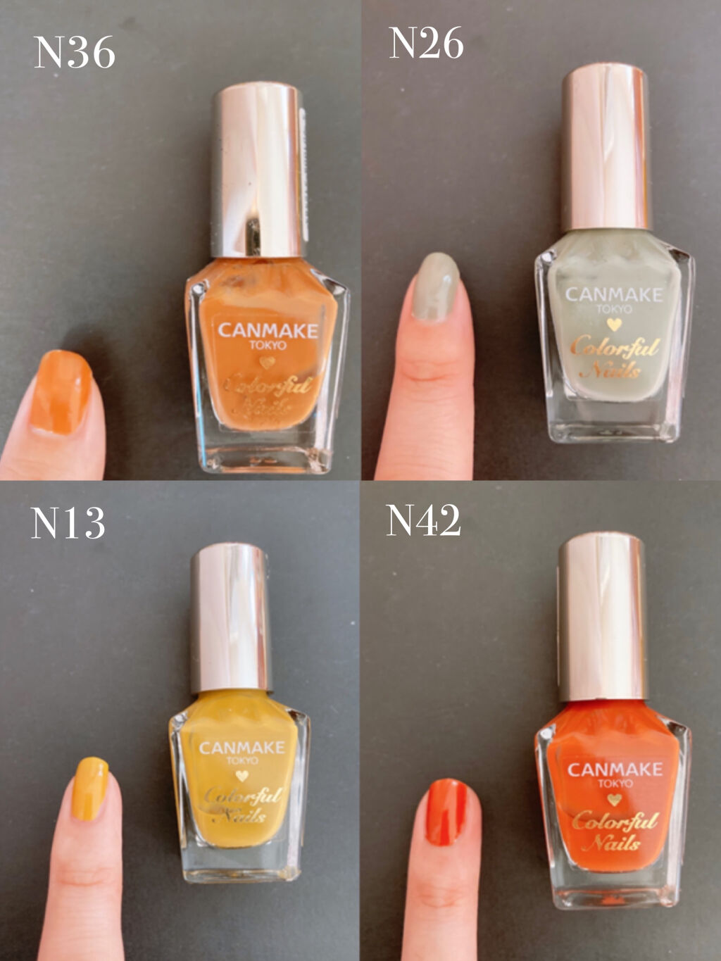 キャンメイク カラフルネイルズ10色塗りやすく、乾くのも速い愛用ネイル💅N29とN26は2度塗りです。...