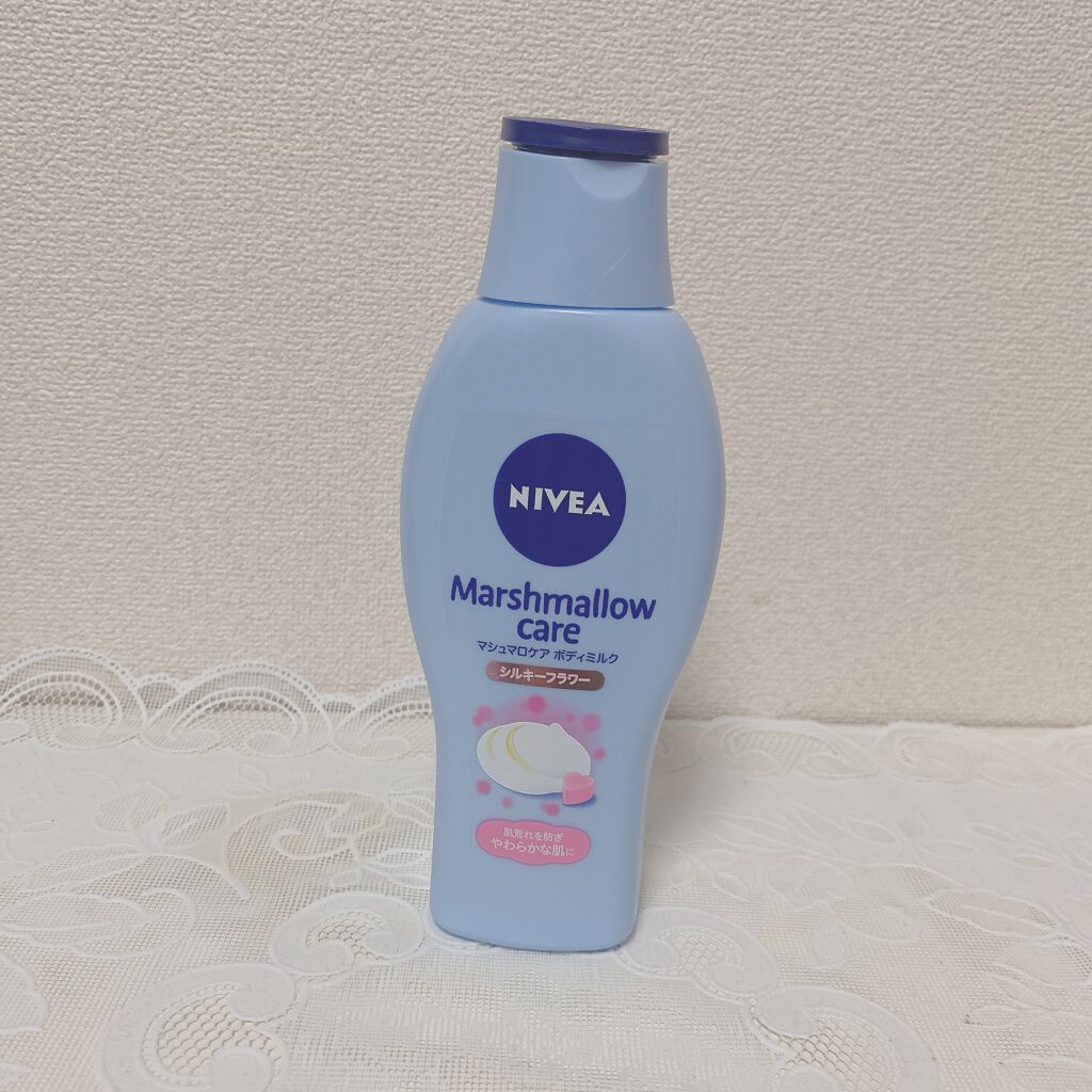 ニベア マシュマロケアボディミルク シルキーフラワーの香り 200ml💐軽やかに可憐なシルキーフラワーの香りスーッと伸びる塗りごごち!塗ってしばらくはぺたぺた感とオイル?のぬるっと感あるけど馴染むとしっとりなめらかな感じに!夜塗って朝起き...