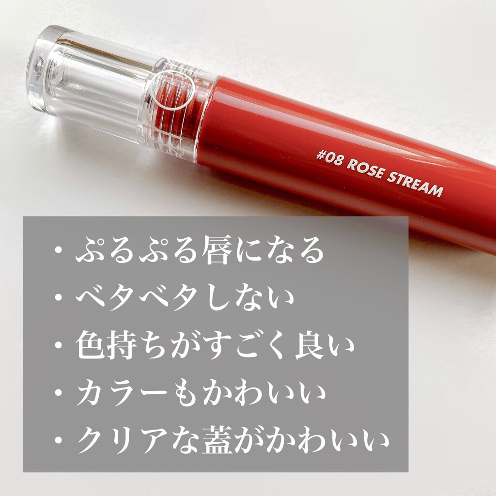 | 口紅・グロス・リップライナーランキング第87位 | 潤いが長続きします! 透け色ですが、重ねればパキッと仕上がるので調整しやすいティントだと思います!! | 詳細を見る |