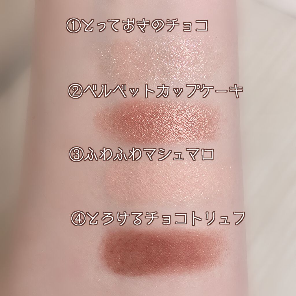- 【数量限定商品】 まるで本物のチョコみたい!キュートなパッケージデザインに目が離せない。なめらかに彩るブラウンカラーをのせれば、心まで満たされるスイートな目元に。家族や友達、大切な人に贈りたい特別なアイシャドウパレット。 ひと塗りでムラなくまぶたに密着、しっとり濃厚に色づく高発色。 お好みのカラーを重ね使いすることで、より深みのある立体的なグラデーションが完成します。
