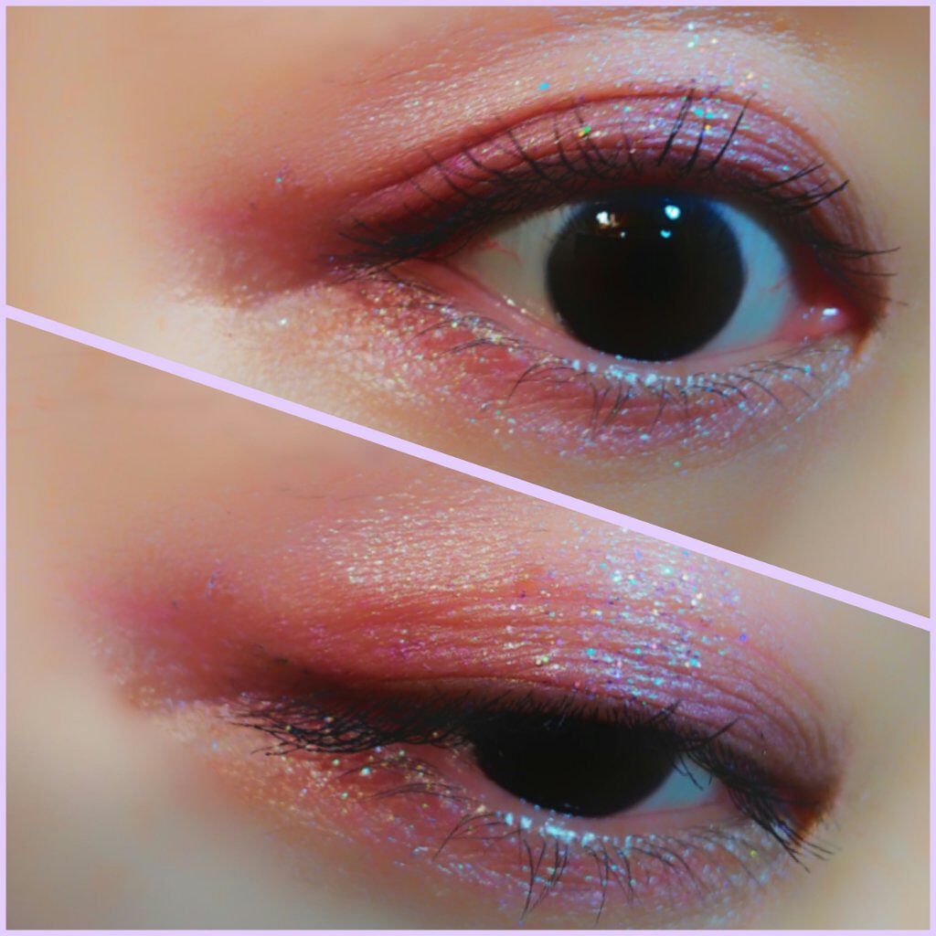 お値段は一つ300円。破格ですね。 色は06のプラネットシャドウと03のエメラルドティアーズを購入しました。 06のプラネットシャドウは濃い青色をしたグリッターになっています。手に塗ってみると青ラメとスパンコールがぎっしり入っていてまさに宇宙という感じがしました。 こちらのグリッター思ったよりべったりくっつくことはなく、ほんの少ししかつかないので涙袋など細かいところに塗るのにちょうど良いです。