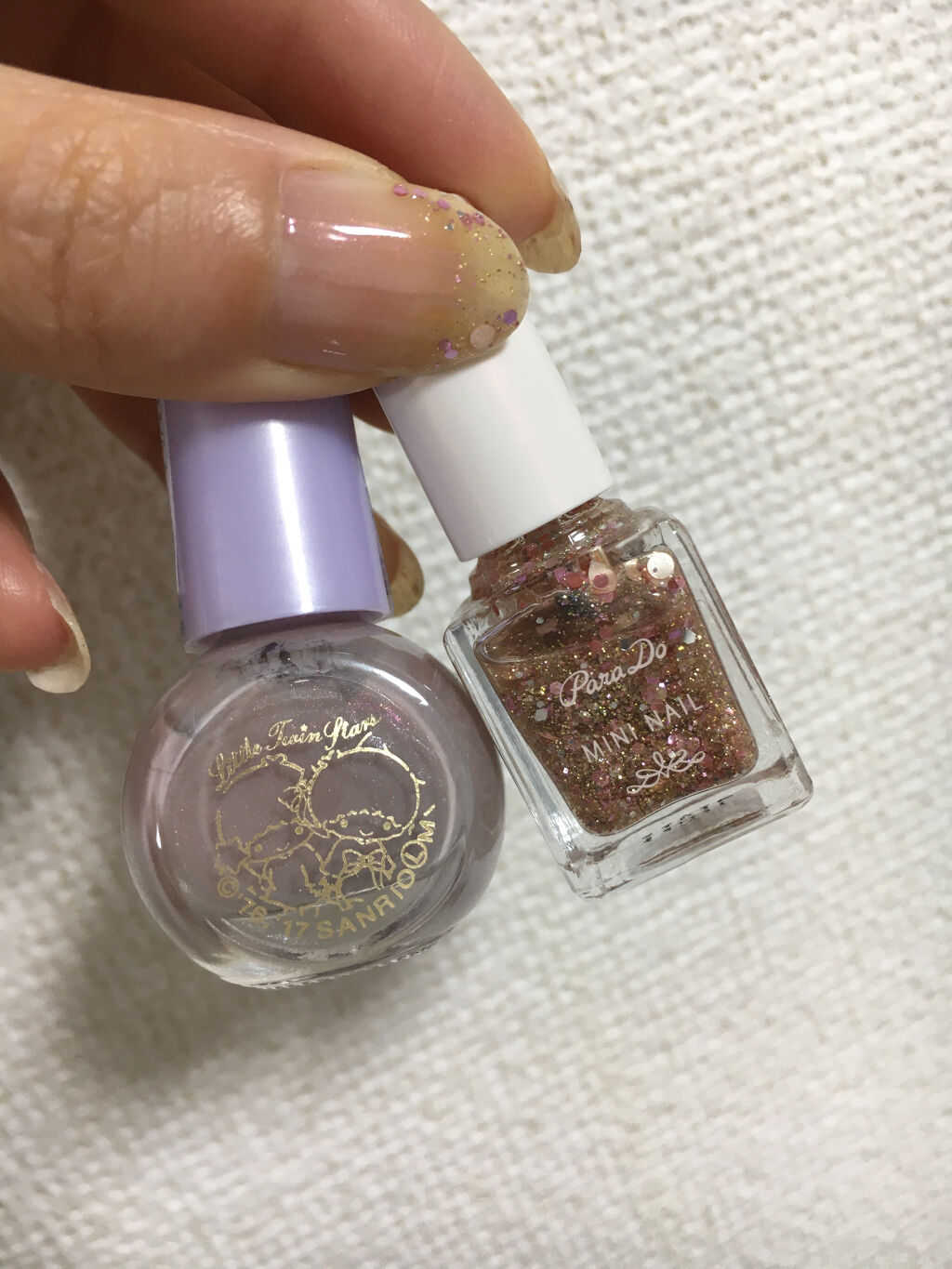 #DAISO#サンリオネイル#オーロラモカ#パラドゥ#ミニネイル#GD02#ムーングリッター#キャンドゥ#しずくネイルシール久々にネイル綺麗にしてみました✨フレンドネイルのオーロラモカを全指に1度塗りパラドゥのムーングリッターを爪の先端の方に...