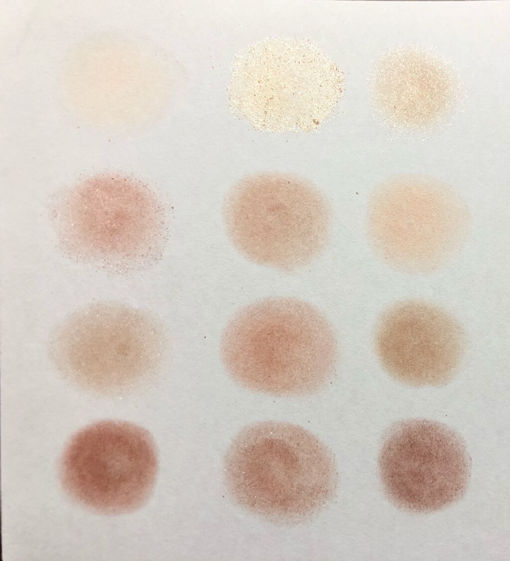 🧸KISSNEWYORKディアダイアリー・ラブリームードドン・キホーテで500円で売っているのを見かけて、普段使い出来そうで尚且つ可愛い色のアイシャドウが12色も入っているのに驚き、買ってみました🙌🏻腕だけだと少し見づらかったので、画用紙にパ...