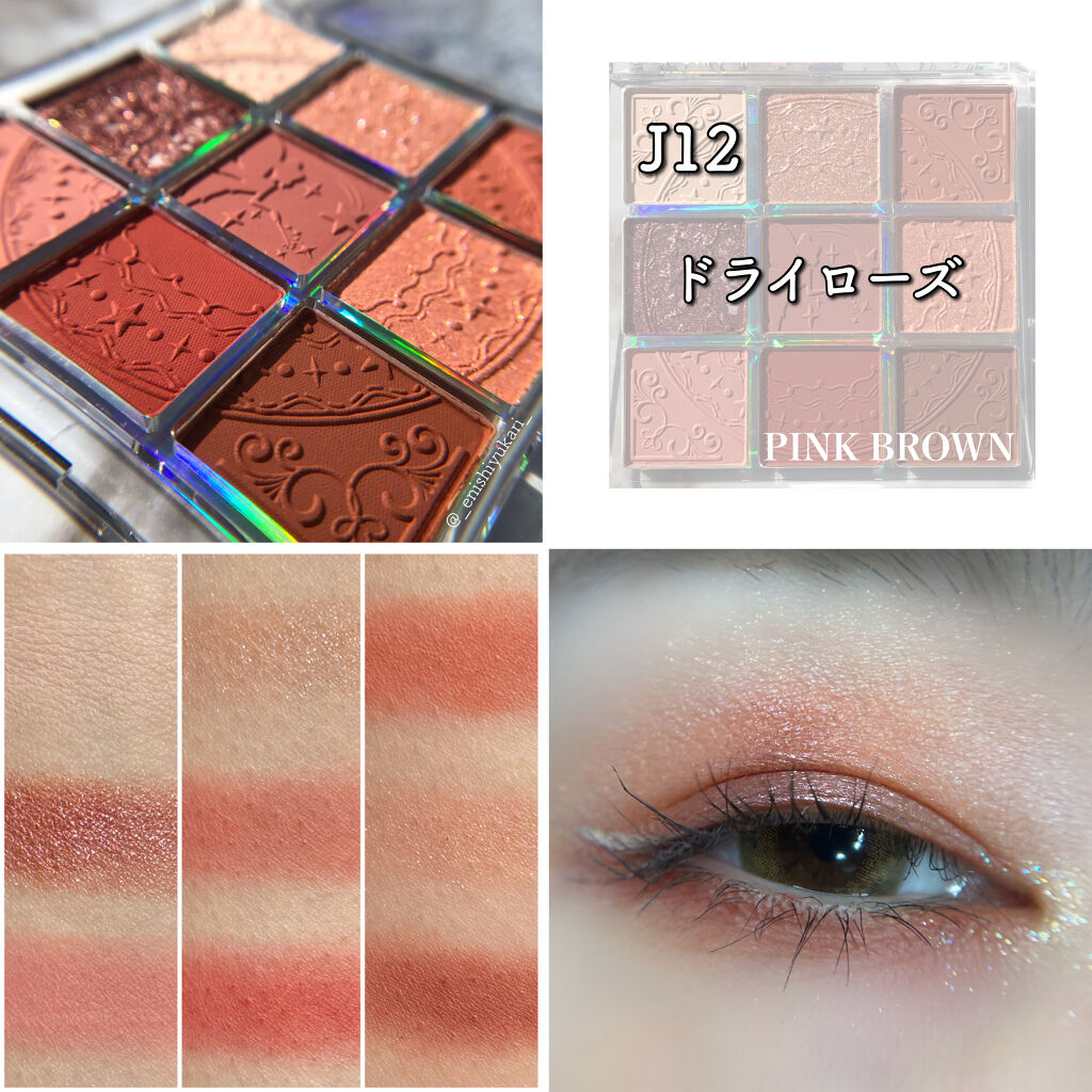 ZEESEAクォーツ9色アイシャドウパレットドリームランドアイシャドウJ12 ドライローズティンカーベルデザインの美しい型押しアイシャドウパレット(人´∀`*)今回は左上のマットのベージュをアイホールに、真ん中のマットな赤紫を二重幅に、右下の...