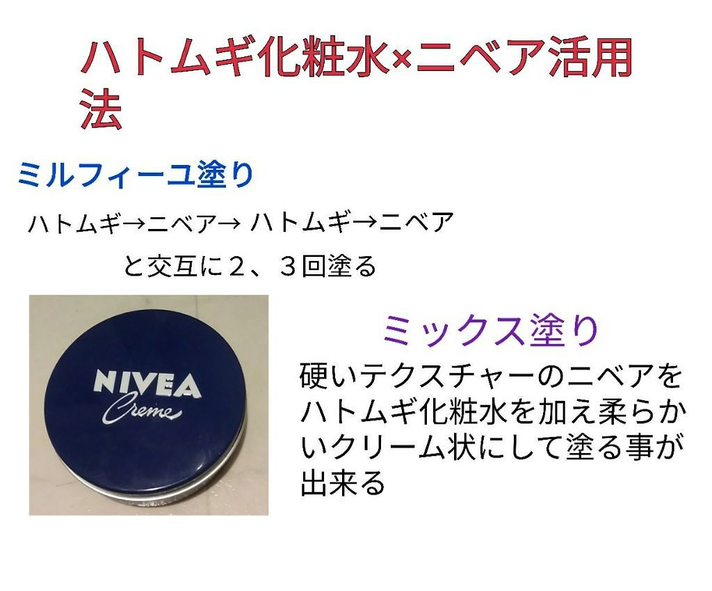 - 肌にうるおいを与えてスキンコンディションを整える、天然保湿成分ハトムギエキス配合の化粧水です。 みずみずしく浸透力に優れた処方なので、重ねるほどぐんぐん肌になじみ、角質層を水分で満たします。 たっぷり肌に重ねづけしてもべたつかないさっぱりした使用感なので、スキンケアのはじめにたっぷり使ってください。 肌がひんやりしてきたら十分に水分がなじんだサインです。 ■基本は化粧水として スキンケアのはじめにたっぷり使ってください。 500円玉大の量を3回重ねづけするのが目安です。 肌がひんやりしてきたら十分に水分がなじんだサインです。 ■ローションパックでさらにうるおい コットンやフェイスマスクにたっぷり含ませて約3分間パックすると、角質水分量がさらに高まります。 ■プレ化粧水として 洗顔後すぐにつけることで、その後につけるスキンケアのなじみをよくします。※角質層まで ■ボディにも べたつかないので、毎日の入浴後や日差しを浴びた後などのボディのスキンケアにもおすすめです。